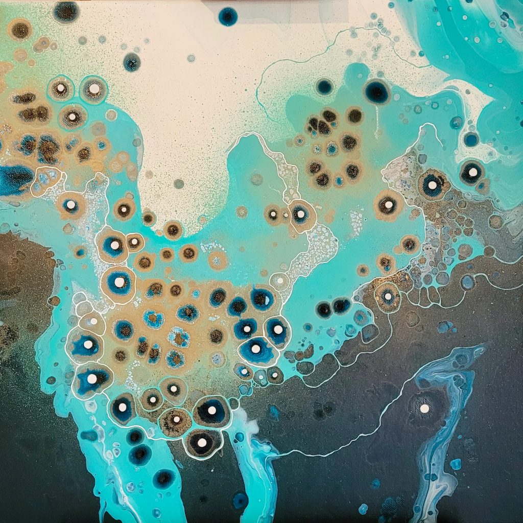 Despite its spontaneous nature and abstract style, I see shapes and colours in fluid art that, to me, are reminiscent of the ocean, rock pools and galaxies. I hope my work inspires the same sense of tranquility, imagination and joy that can be found in our beautiful, natural world.